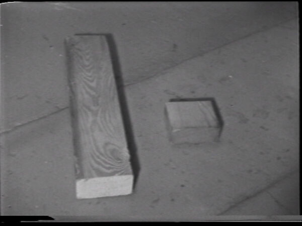 This short is part of a collection representing the entirety of Wegman's work in video to date (excepting commissioned works such as his celebrated pieces for Sesame Street). Wegman took up video while studying painting at the University of Wisconsin. Using the camera like a sketchbook, always with the monitor on so he was watching what he was recording in real time, Wegman improvised situations that both slyly took apart the conventions of painting and sculpture that his generation was leaving behind, while also puncturing the pretensions of Conceptual Art as it was being codified and institutionalized on the East Coast.