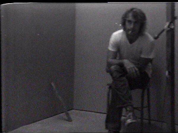 This short is part of a collection representing the entirety of Wegman's work in video to date (excepting commissioned works such as his celebrated pieces for Sesame Street). Wegman took up video while studying painting at the University of Wisconsin. Using the camera like a sketchbook, always with the monitor on so he was watching what he was recording in real time, Wegman improvised situations that both slyly took apart the conventions of painting and sculpture that his generation was leaving behind, while also puncturing the pretensions of Conceptual Art as it was being codified and institutionalized on the East Coast.