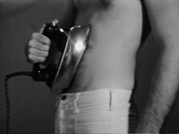 This short is part of a collection representing the entirety of Wegman's work in video to date (excepting commissioned works such as his celebrated pieces for Sesame Street). Wegman took up video while studying painting at the University of Wisconsin. Using the camera like a sketchbook, always with the monitor on so he was watching what he was recording in real time, Wegman improvised situations that both slyly took apart the conventions of painting and sculpture that his generation was leaving behind, while also puncturing the pretensions of Conceptual Art as it was being codified and institutionalized on the East Coast.