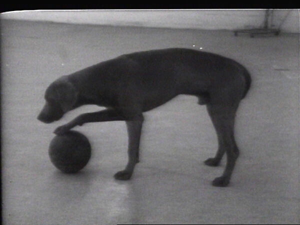 This short is part of a collection representing the entirety of Wegman's work in video to date (excepting commissioned works such as his celebrated pieces for Sesame Street). Wegman took up video while studying painting at the University of Wisconsin. Using the camera like a sketchbook, always with the monitor on so he was watching what he was recording in real time, Wegman improvised situations that both slyly took apart the conventions of painting and sculpture that his generation was leaving behind, while also puncturing the pretensions of Conceptual Art as it was being codified and institutionalized on the East Coast.