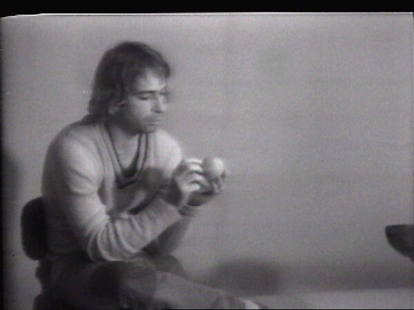 This short is part of a collection representing the entirety of Wegman's work in video to date (excepting commissioned works such as his celebrated pieces for Sesame Street). Wegman took up video while studying painting at the University of Wisconsin. Using the camera like a sketchbook, always with the monitor on so he was watching what he was recording in real time, Wegman improvised situations that both slyly took apart the conventions of painting and sculpture that his generation was leaving behind, while also puncturing the pretensions of Conceptual Art as it was being codified and institutionalized on the East Coast.