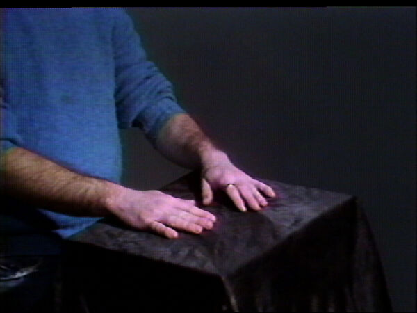 This short is part of a collection representing the entirety of Wegman's work in video to date (excepting commissioned works such as his celebrated pieces for Sesame Street). Wegman took up video while studying painting at the University of Wisconsin. Using the camera like a sketchbook, always with the monitor on so he was watching what he was recording in real time, Wegman improvised situations that both slyly took apart the conventions of painting and sculpture that his generation was leaving behind, while also puncturing the pretensions of Conceptual Art as it was being codified and institutionalized on the East Coast.