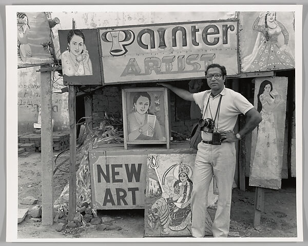 Rahman is a photographer, curator, designer, activist, and co-founder of SAHMAT, a Delhi-based collective of artists and scholars dedicated to promoting cultural pluralism and secularism in India. After studying physics and photography at the Massachusetts Institute of Technology, he went on to study graphic design at the Yale University School of Art. Working in both color and black-and-white, Rahman is known for his street photographs of India and his environmental portraits of artists and intellectuals. In this rebus-like portrait, Rahman's close friend and mentor, the photographer Raghubir Singh, poses before a painter’s market stall in New Delhi. The image offers a clever gloss on the changing status of their shared métier, hinting that the photographer will supplant the "painter artist" as a creator of "new art."
