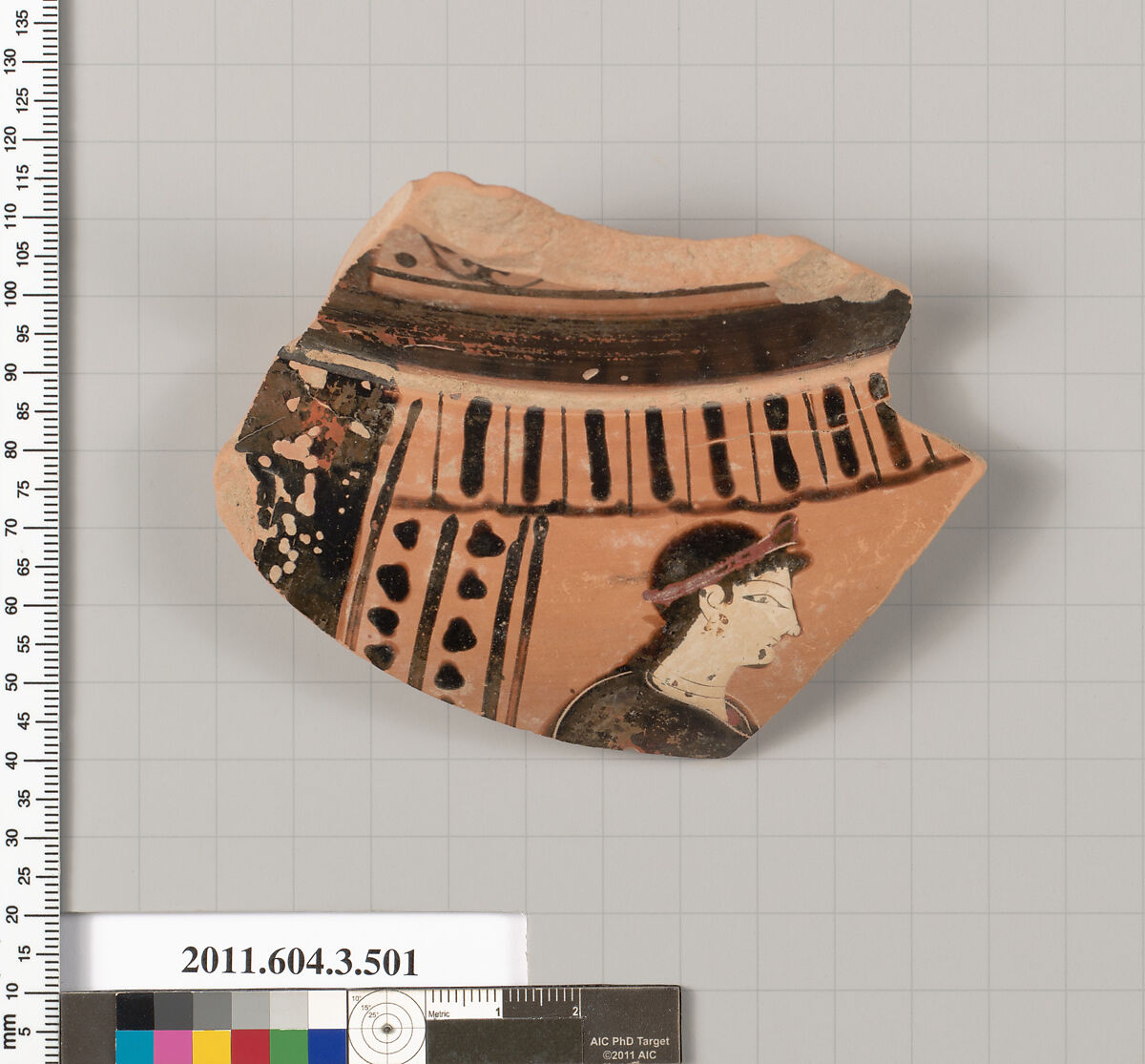 - Title:Terracotta fragment of a column-krater (bowl for mixing wine and water)