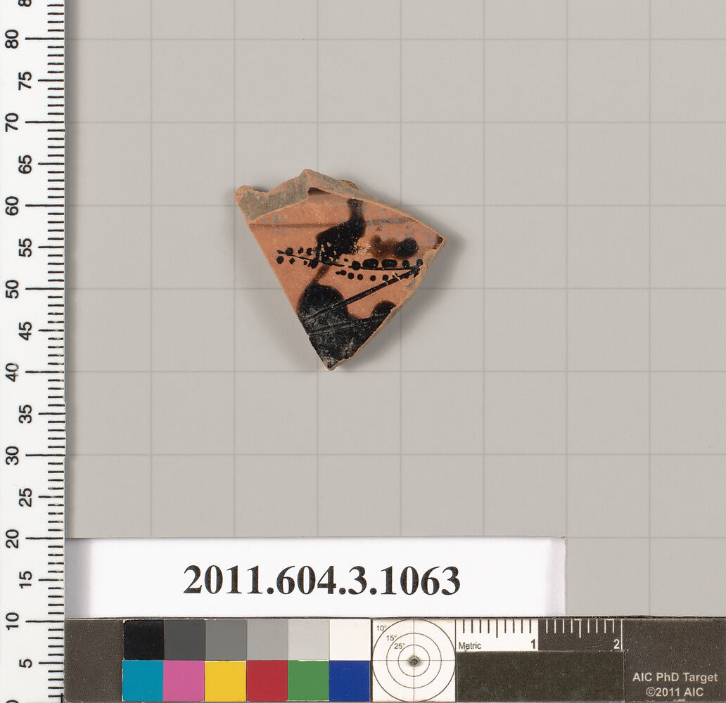 - Title:Terracotta fragment of a mastoid (drinking cup with narrow base)