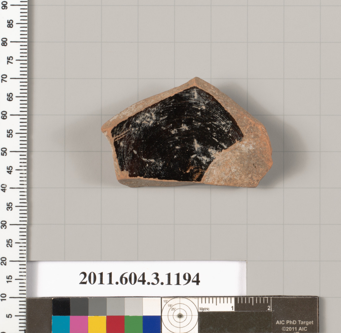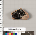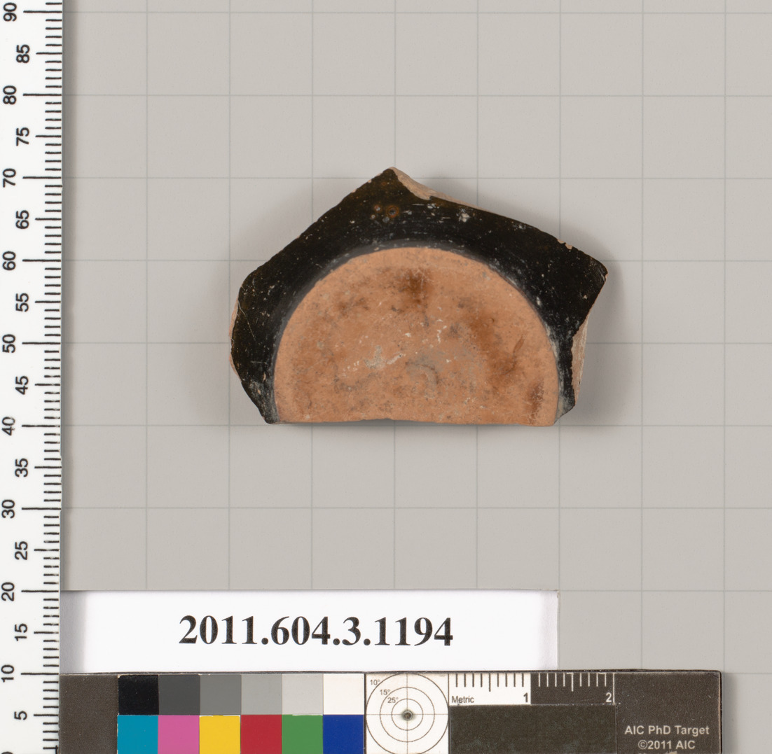 Black glazed fragment from the lower body of a mastoid; the resting surface is unglazed