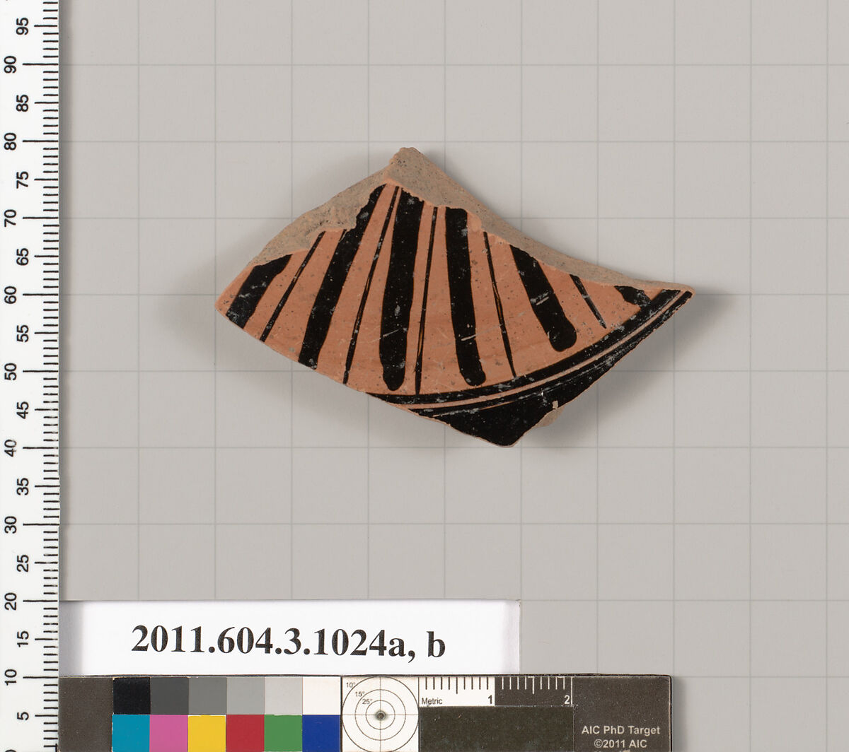 - Title: Terracotta fragment of a lekanis lid (covered dish)?