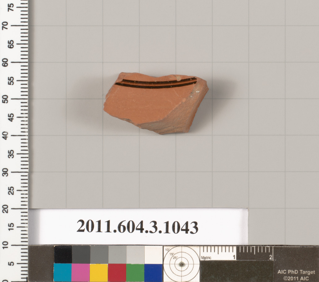 Exterior, reserve interrupted by two thin bands of black glaze