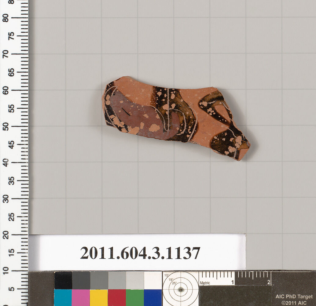 - Title:Terracotta fragment of a mastoid (drinking cup with narrow base) or a kyathos (cup-shaped ladle)