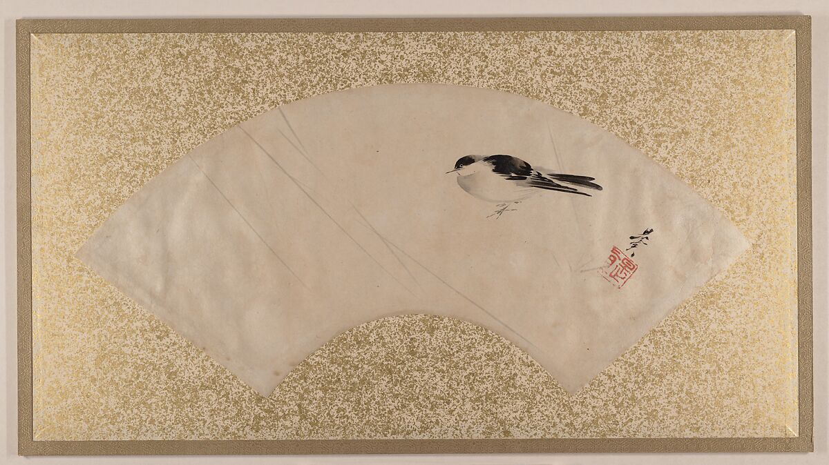 - Medium: Fan painting mounted as album leaf; tempera on paper