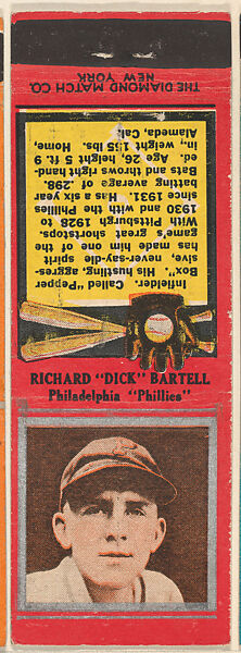 - Title: Richard "Dick" Bartell, Philadelphia Phillies, from the Baseball Players Match Cover design series (U1) issued by Diamond Match Company