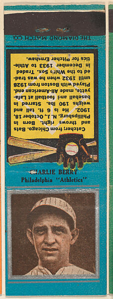 - Title: Charlie Berry, Philadelphia Athletics, from the Baseball Players Match Cover design series (U1) issued by Diamond Match Company