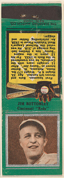 - Title: Jim Bottomley, Cincinnati Reds, from the Baseball Players Match Cover design series (U1) issued by Diamond Match Company