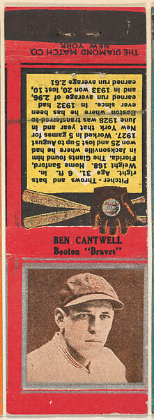 - Title: Ben Cantwell, Boston Braves, from the Baseball Players Match Cover design series (U1) issued by Diamond Match Company