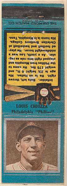 - Title: Louis Chiozza, Philadelphia Phillies, from the Baseball Players Match Cover design series (U1) issued by Diamond Match Company