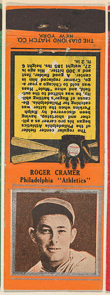 - Title: Roger Cramer, Philadelphia Athletics, from the Baseball Players Match Cover design series (U1) issued by Diamond Match Company