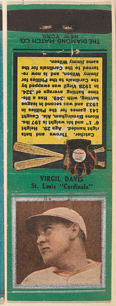 - Title: Virgil Davis, St. Louis Cardinals, from the Baseball Players Match Cover design series (U1) issued by Diamond Match Company