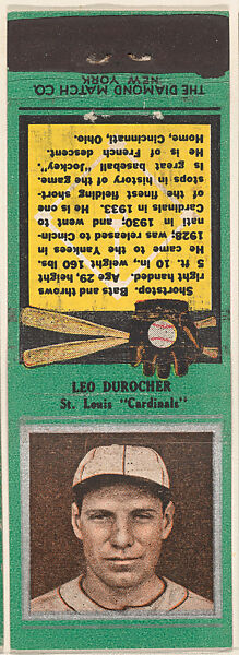 - Title: Leo Durocher, St. Louis Cardinals, from the Baseball Players Match Cover design series (U1) issued by Diamond Match Company