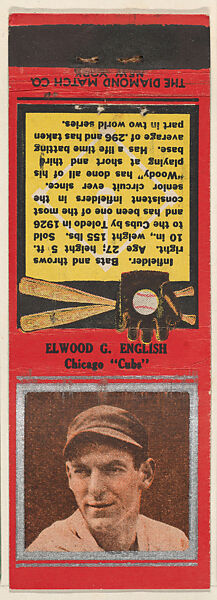 - Title:Elwood G. English, Chicago Cubs, from the Baseball Players Match Cover design series (U1) issued by Diamond Match Company