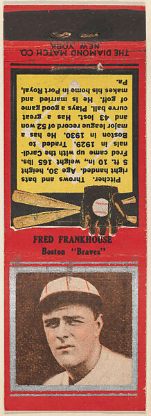 - Title: Fred Frankhouse, Boston Braves, from the Baseball Players Match Cover design series (U1) issued by Diamond Match Company
