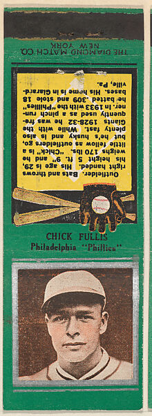 - Title: Chick Fullis, Philadelphia Phillies, from the Baseball Players Match Cover design series (U1) issued by Diamond Match Company
