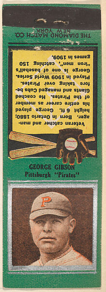 - Title:George Gibson, Pittsburgh Pirates, from the Baseball Players Match Cover design series (U1) issued by Diamond Match Company