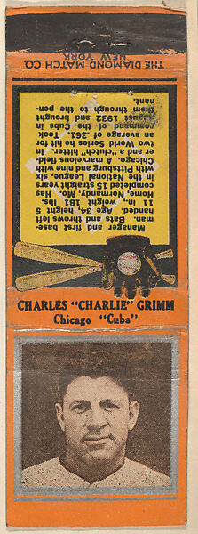 - Title: Charles "Charlie" Grimm, Chicago Cubs, from the Baseball Players Match Cover design series (U1) issued by Diamond Match Company