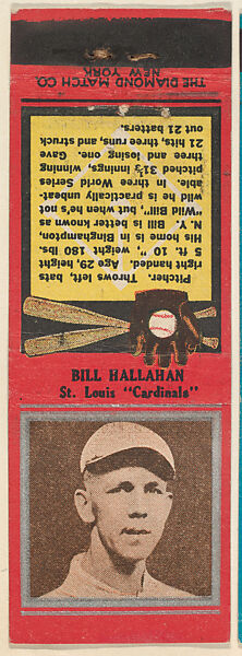 - Title:Bill Hallahan, St. Louis Cardinals, from the Baseball Players Match Cover design series (U1) issued by Diamond Match Company