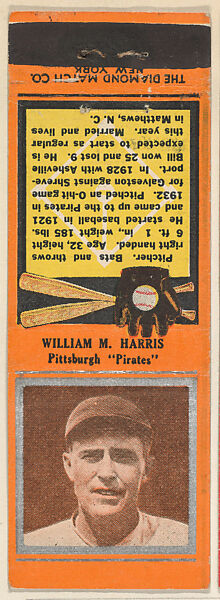 - Title:William M. Harris, Pittsburgh Pirates, from the Baseball Players Match Cover design series (U1) issued by Diamond Match Company