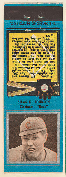 - Title: Silas K. Johnson, Cincinnati Reds, from the Baseball Players Match Cover design series (U1) issued by Diamond Match Company