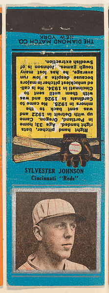 - Title:Sylvester Johnson, Cincinnati Reds, from the Baseball Players Match Cover design series (U1) issued by Diamond Match Company