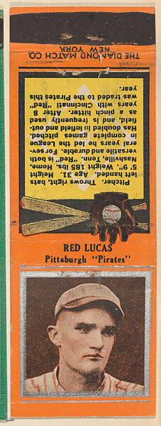 - Title: Red Lucas, Pittsburgh Pirates, from the Baseball Players Match Cover design series (U1) issued by Diamond Match Company