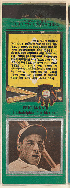 - Title: Eric McNair, Philadelphia Athletics, from the Baseball Players Match Cover design series (U1) issued by Diamond Match Company