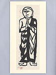 To create these images of Buddhist disciples and a bodhisattva, Munakata Shikō—the most highly acclaimed Japanese print artist of the twentieth century—gouged magnolia wood blocks with every ounce of energy he could muster. Munakata, like carvers of Buddhist and Shinto sculptures in ancient times, believed he was drawing life out of the wood, and that he was giving expression to the primordial spiritual energy of nature. Munakata’s prints were discovered in the mid-1930s by the prominent art critic Yanagi Sōetsu, who was an advocate for mingei, or “folk art,” which he saw as embodying two quintessential aspects of Japanese art: a deep respect for the materiality of the medium and a bold, direct, unselfconscious mode of expression. Munakata’s mingei approach was further enhanced by his immersion in Zen philosophy as well as by his fascination with European experiments in Post-Impressionist art—van Gogh, whom he idolized, as well as the German Expressionists—which enabled him to create an entirely new style of Japanese woodcut that propelled him to international fame. In 1955 he won the top award for prints at the São Paulo Biennale, and in 1956 he received the Grand Prize for printmaking at the Venice Biennale. In 1959 he visited New York at the invitation of the Japan Society and the artistic career of this self-taught son of a blacksmith from rural northern Japan would never again be the same.