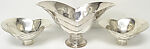 This centerpiece and garnitures belong to Peter Müller-Munk‘s early oeuvre as a silversmith and reflect his exceedingly precise craftsmanship and signature forms—a masterpiece of Art Deco. Architect Ely Jacques Kahn recommended Müller-Munk for this commission to his clients Mr. and Mrs. Alfred L. Rose while remodeling their Park Avenue apartment.