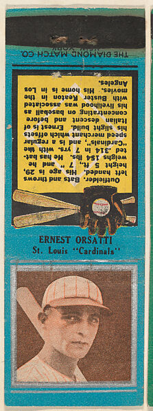 - Title:Ernest Orsatti, St. Louis Cardinals, from the Baseball Players Match Cover design series (U1) issued by Diamond Match Company