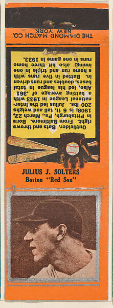 - Title:Julius J. Solters, Boston Red Sox, from the Baseball Players Match Cover design series (U1) issued by Diamond Match Company