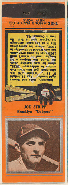 - Title: Joe Stripp, Brooklyn Dodgers, from the Baseball Players Match Cover design series (U1) issued by Diamond Match Company
