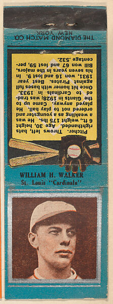 - Title: William H. Walker, St. Louis Cardinals, from the Baseball Players Match Cover design series (U1) issued by Diamond Match Company