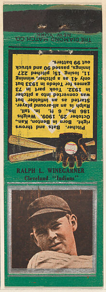 - Title: Ralph L. Winegarner, Cleveland Indians, from the Baseball Players Match Cover design series (U1) issued by Diamond Match Company