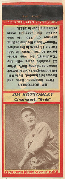 Jim Bottomley, Cincinnati Reds, from the Baseball Players Match Cover design series (U3) issued by Diamond Match Company