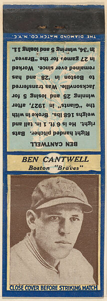 - Title: Ben Cantwell, Boston Braves, from the Baseball Players Match Cover design series (U3) issued by Diamond Match Company