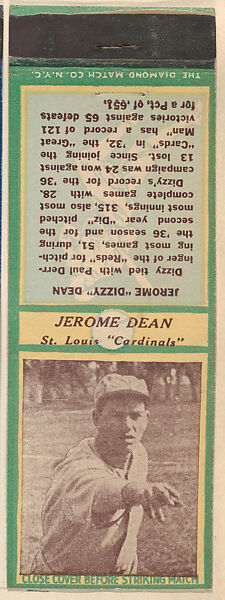 - Title:Jerome Dean, St. Louis Cardinals, from the Baseball Players Match Cover design series (U3) issued by Diamond Match Company