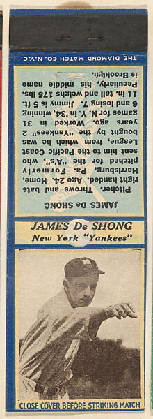 - Title: James De Shong, New York Yankees, from the Baseball Players Match Cover design series (U3) issued by Diamond Match Company