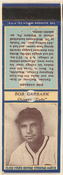 - Title:Bob Garbark, Chicago Cubs, from the Baseball Players Match Cover design series (U3) issued by Diamond Match Company