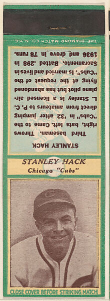 - Title:Stanley Hack, Chicago Cubs, from the Baseball Players Match Cover design series (U3) issued by Diamond Match Company