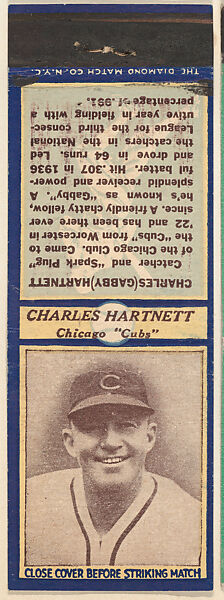 - Title: Charles Hartnett, Chicago Cubs, from the Baseball Players Match Cover design series (U3) issued by Diamond Match Company