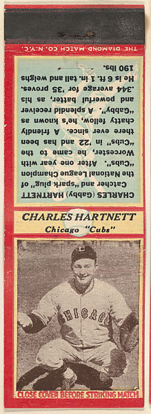 - Title: Charles Hartnett, Chicago Cubs, from the Baseball Players Match Cover design series (U3) issued by Diamond Match Company