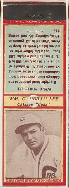 - Title:Wm. C. "Bill" Lee, Chicago Cubs, from the Baseball Players Match Cover design series (U3) issued by Diamond Match Company