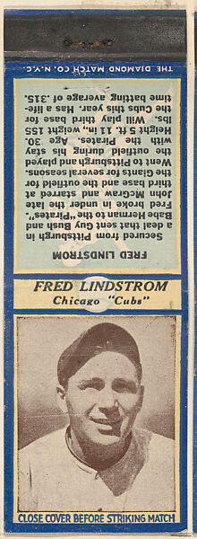 - Title: Fred Lindstrom, Chicago Cubs, from the Baseball Players Match Cover design series (U3) issued by Diamond Match Company